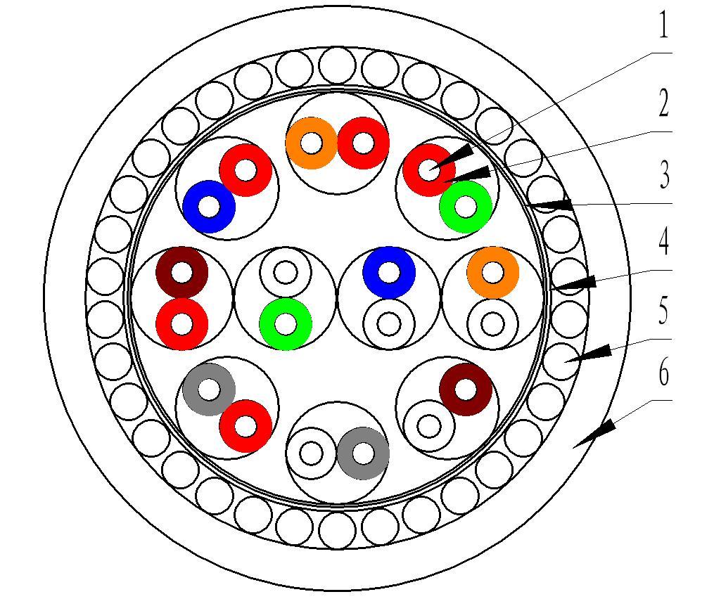 1導體 2 絕緣 3包帶 4襯層 5鎧裝 6護套